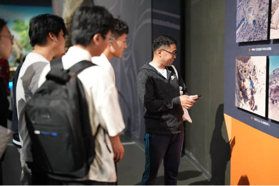 在经验分享环节,90级校友向继军边参观边讲述,为学生党员们带来了一场生动感人的“地质精神公开课”。他结合当年野外地质实习经历,生动诠释了地质人“艰苦奋斗、求真务实、甘于奉献”的职业品格。针对同学们在学习规划、专业实践、就业选择等方面的困惑,向继军校友结合行业发展趋势与自身经验逐一解答,鼓励大家既要扎实学好专业理论知识,也要积极参与野外实践,在“千般磨砺”中锤炼意志、增长才干,努力成长为“玉汝于成”的复合型人才。真挚的分享、务实的建议让学生党员们深受启发,现场互动交流氛围热烈。
