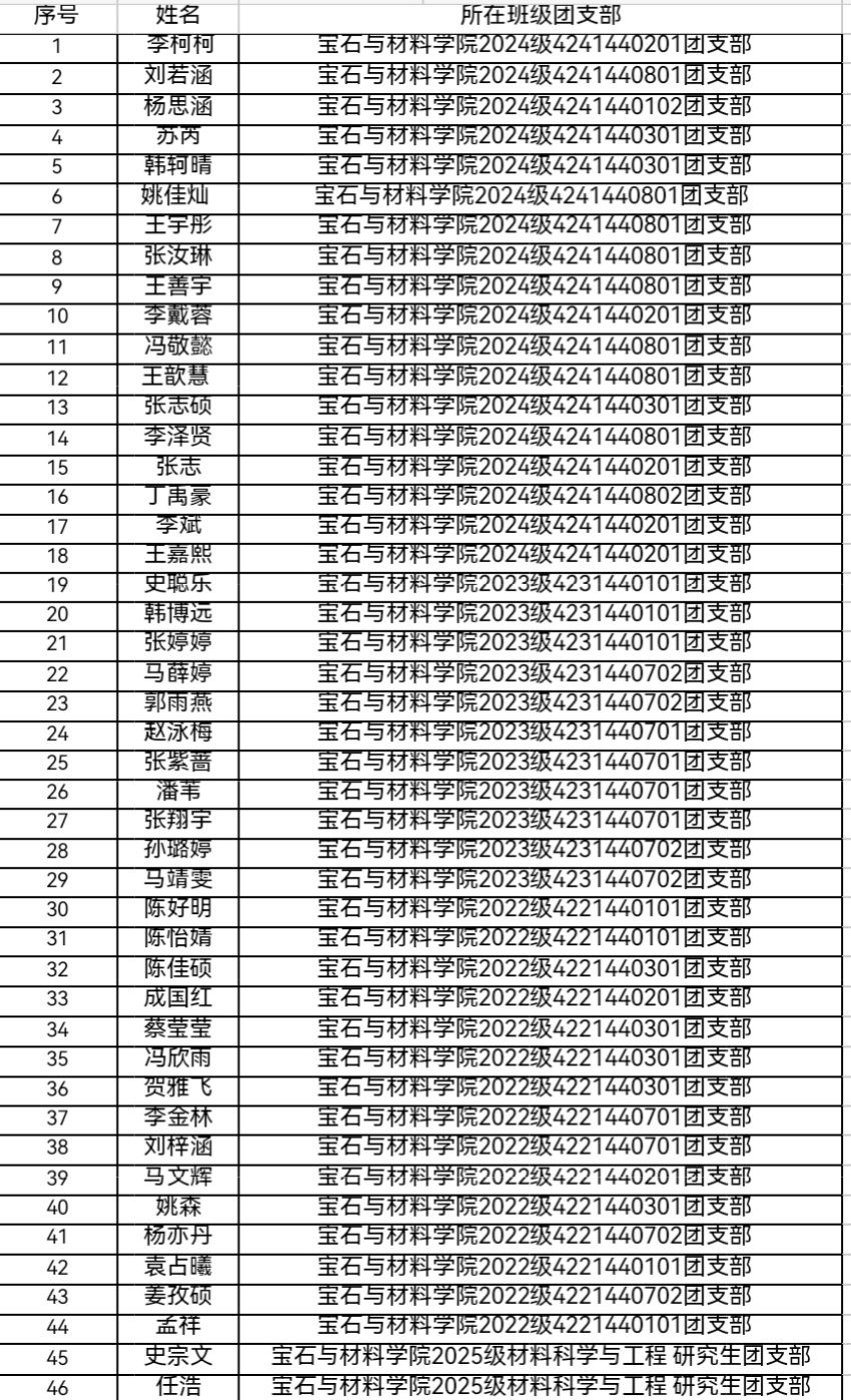 2025学年至2026学年秋季日本av片 入团发展对象名单公示