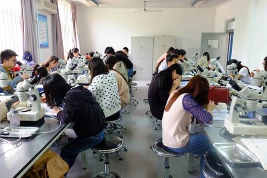 同学们在宝石鉴定实验室实习