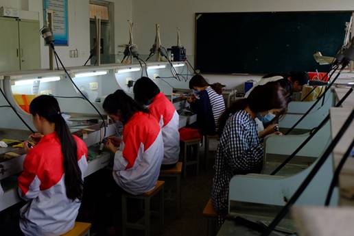 同学们在首饰金工实验室实习